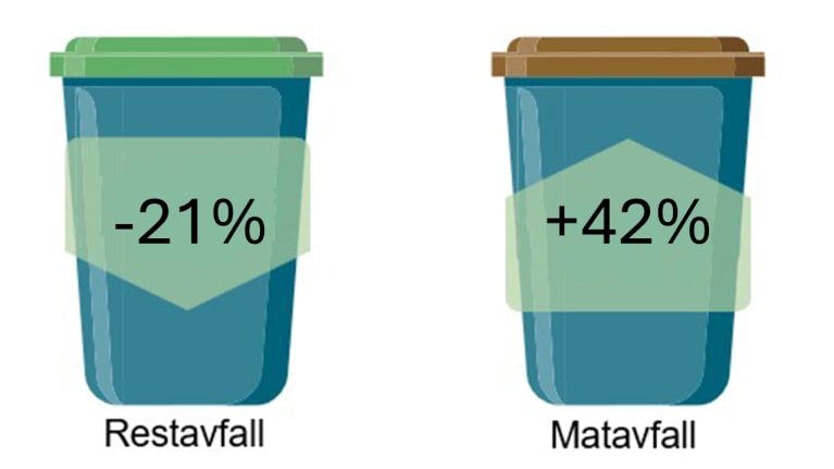 Bildet over viser endring i innsamla mengde av restavfall og matavfall for februar 2026 samanlikna med februar 2025.